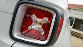 Ennek tudatában máris szembetűnő a Renegade négyszögletes formája és kerek első fényszóróik, melyek tökéletesen hozzák a Jeep-es hangulatot. A márka legmarkánsabb – és a Willysen is fellelhető – ismertetőjegye, a függőleges vonalakból álló hűtőrács ezúttal is nagy hangsúlyt kapott. A tervezők a katonai járművek látványával szinte egybeforró marmonkannák oldalán fellehető X motívumot használták fel az ihletet adó terepjáró felidézésére. Az első és hátsó fényszórókban megjelenő formák feldobják az amúgy sem unalmas külsőt, ráadásul utóbbiaknál még a gyártó újabban előszeretettel használt „logója” is megjelenik.
