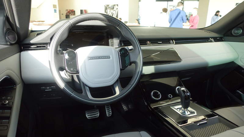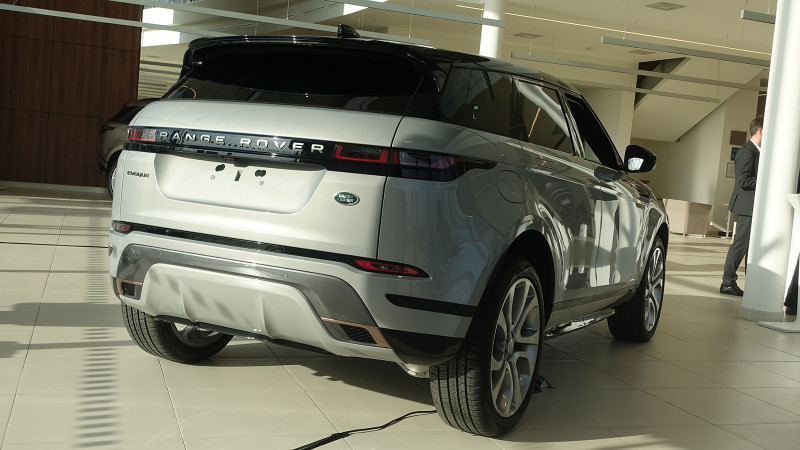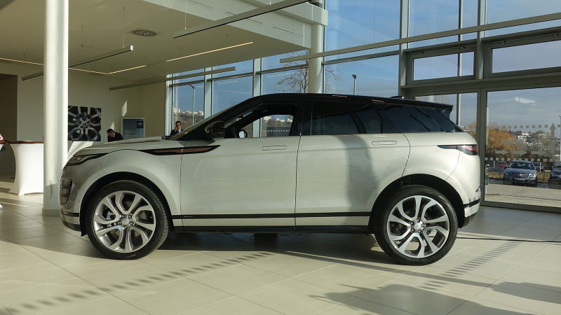 A kiállított Evoque persze nem alap-, hanem csúcsmodell volt: sportos R-Dynamic köntösbe volt öltöztetve és nyilván igazán tetszetős, bár annál kevésbé praktikus 21 (!) colos felnik díszítették. Az elegáns bézs szín szintén telitalálat, az autó minden szögből gyönyörű. Az Evoque elődjéhez hasonlóan nagyobbnak láttatja magát valós méreteinél, ami jó tulajdonsága, akárcsak az, hogy nem nőtt feleslegesen nagyra.