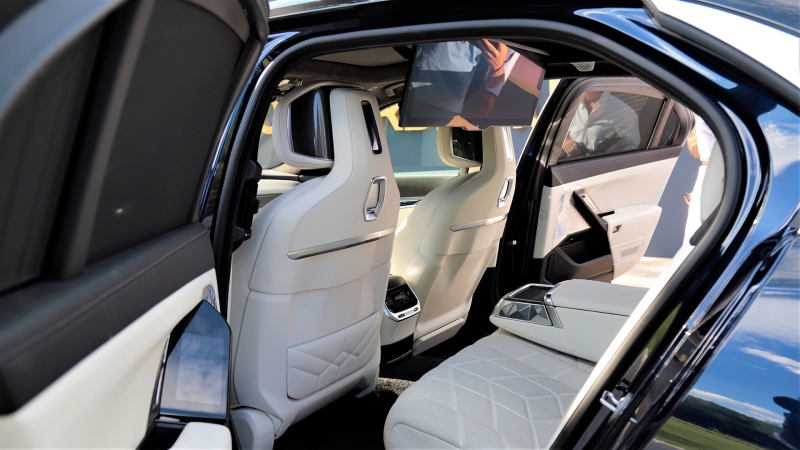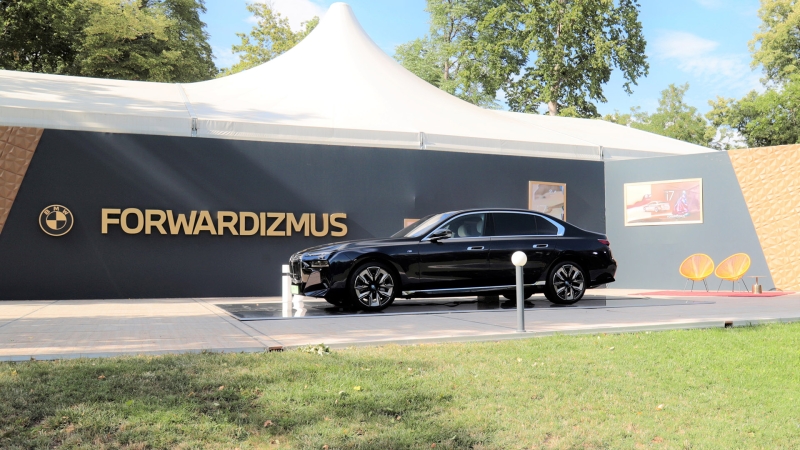 A helyszín káprázatos luxus hangulatához és korának előremutató technikai megoldásaihoz kiválóan passzolt a parkban kiállított, vadonatúj BMW i7, amelyet elsőként most vehettünk szemügyre Magyarországon. A teljesen elektromos hajtású zászlóshajó a gyár szerint a WLTP-nek megfelelően 590-625 kilométer megtételére is képes egy feltöltéssel, nem mellesleg 544 lóerős, de mégsem erről lesz emlékezetes. Hanem arról, hogy igazán bevállalósan lépett előre.
