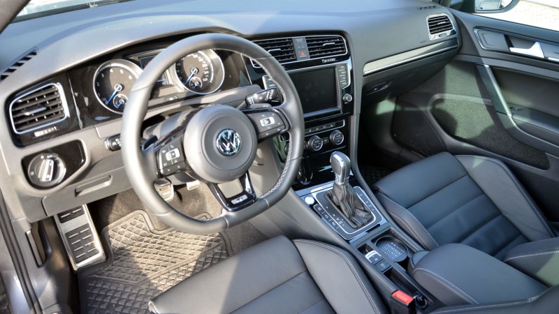 Elektromos rásegítésről ezúttal persze szó nincs, s az akkucsomag helyett a Golf R esetében a márka 4Motion nevű összkerékhajtása növeli a tömeget – illetve mérsékli kicsit a csomagtartót, ami az elsőkerekes Golfokénál 37 literrel kisebb, vagyis 343 literes. A négy hajtott kerékre viszont tényleg szükség van, a motorháztető alatt található 2-literes, négyhengeres TSI turbómotor ugyanis nem kevesebb mint 300 lóerőt (5500-6200/perc között) és 380 Nm-t (1800-5500/perc között) állít csatasorba. Ennek köszönhetően a Golf GTE-nél egy mázsával könnyebb, üresen alig több mint 1,4 tonnás, 4,3 méter hosszú ’vas’ 5 másodperc alatt katapultál álló helyzetből 100 km/h-s sebességre, végsebességét pedig elektronika korlátozza 250 km/h-ban. Nem kérdés, abszolút sportautós értékek ezek, ráadásul a használhatóság és a helykínálat terén semmiféle kompromisszumot nem kell kötni: egyszerűbb testvéreihez hasonlóan a Golf R is egy kényelmes, csendes és tágas, kiváló családi autó.
