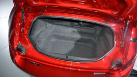 Számos új extra is érkezik a roadsterhezAz utastérrel a legnagyobb, sőt, igazából egyetlen gondom a kormány korlátozott állíthatósága volt: sajnos csupán magasságban lehetett állítani a kiállított modell volánját, tengelyirányban pedig nem, így hiába bizonyult elégnek a helykínálat, a távoli kormánykereket – aminek mind a mérete, fogása és kialakítása remek – csak nyújtott kézzel értem el, ez pedig a vezethetőség szempontjából bizony nagyon nem jó. A magasabb sofőröknél emiatt közel sem ideális vezetési pozíció garantáltan nem vall a „jimba ittai” filozófiára, így nagyon remélem, hogy ezt a mérnökök még gyorsan átgondolják – én mindenesetre jeleztem észrevételemet az egyik vezető tervezőnek, aki szorgosan feljegyzetelte javaslatomat, miután vezetési helyzetemet leellenőrizve konstatálta, hogy valóban nem beszélek butaságokat. Mindenesetre örökre hálás lennék a mérnököknek, ha ezt a problémát a jövőre beinduló szériagyártásig valahogy megoldanák - még szerencsére lenne rá idejük.