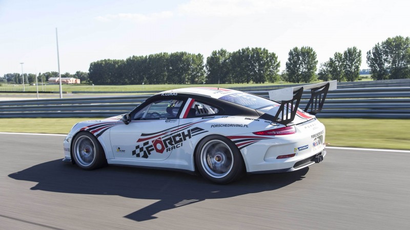 Megízlelhettük a valaha készült leggyorsabb Porsche 911 képességeit. Sajnos a zártkörű teszten a kormányt nem adták kezünkbe, ám alkalmi anyósülésünkről makulátlanul kiélvezhettük, ahogy a profi pilóták a Slovakiaringen terelgették a vadonatúj 911 GT3 Cup versenyautót.