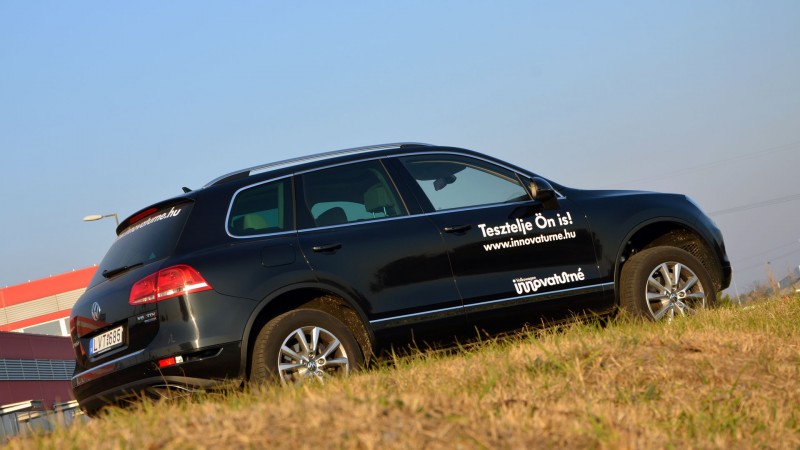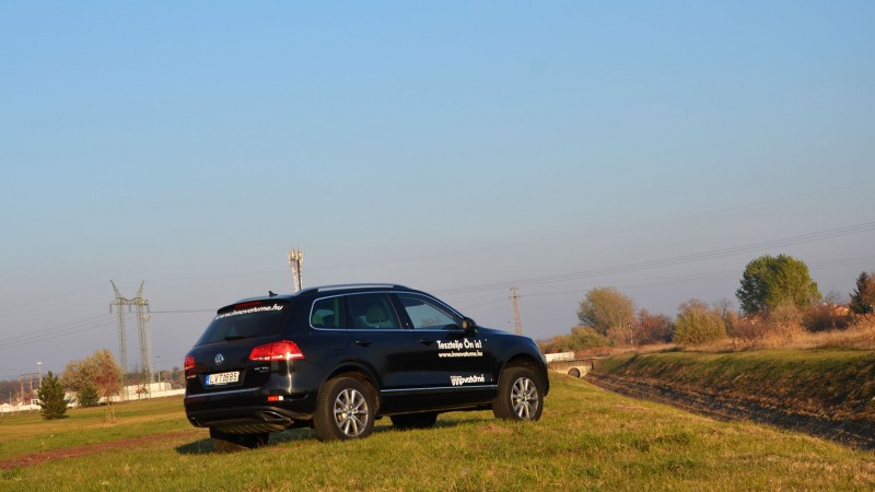 A Volkswagen nem viccel - galériaAz autó hajtáslánca ugyanis több mint kifinomult, s esetünkben a légrugós felfüggesztés nem csak az autó hasmagasságának módosítását teszi lehetővé, de három fokozatban állítható a futómű karakterisztikája is. A felhőtlen hangulathoz asszisztál a VW háromliteres, V6-os, közös nyomócsöves dízelmotorja is, ami ezúttal 240 lóerős teljesítményt, és kétezres fordulaton ébredő, bődületes 550 Nm-es nyomatékot bocsát rendelkezésünkre. A rendszer állandó négykerékhajtáson keresztül keseríti meg az abroncsok életét, miközben torsen-differenciálmű osztja az erőfolyamot a két tengely között. A hátsó mechanikus differenciálzártól gyakorlatilag el is tekinthetünk, hiszen egy széria Touareg is képes a józanész határain innen árkon-bokron átkelni.