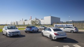Egyelőre öttagú a család - galériaNémet precizitás, prémiumkategóriás autók, lenyűgöző hazai helyszínek: ennek a hármasnak az összevegyítéséből csak jó dolgok származhatnak, és a Mercedes kétnapos rendezvényén mindez bizonyítást is nyert. A szépen zöldülő fák szegélyezte országutak mellett a Hungaroringen és egy off-road pályán is jártunk. A németeknek persze nem véletlenül esett hazánkra a választásuk, hiszen méltán híres, Forma-1-es versenypályánk mellett a Mercedes öttagú kompakt palettájából három Magyarországon készül – és azokból kettőt, a CLA-t és a CLA Shooting Brake-et az egész világon kizárólag itt gyártják. Természetesen egy rövid gyárlátogatás sem maradhatott ki.