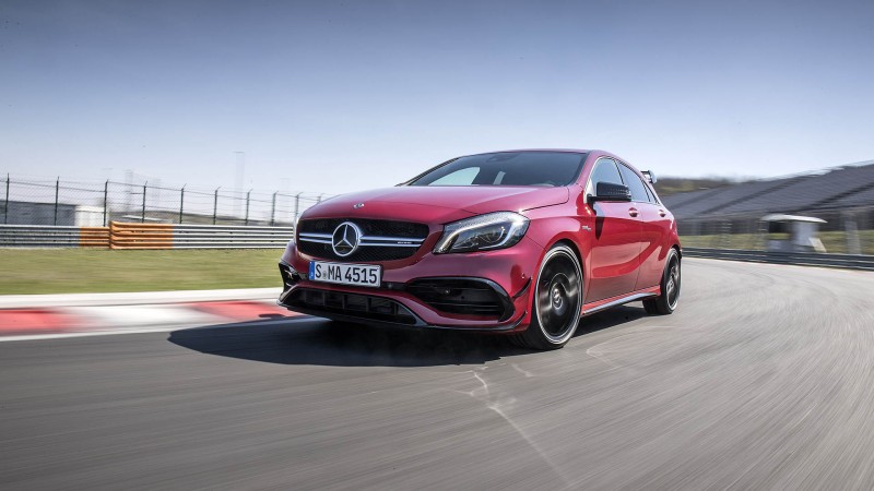 A pályára már A-osztállyal mentünk - galériaElképesztő erőt sikerült kiszuszakolniuk a gyáriaknak a viszonylag kicsi egységből, amellyel továbbra is őrzi a legerősebb szériagyártású négyhengeresnek járó díjat. A kipufogókból magasabb fordulaton agresszív és rendkívül hangos morajlás tör elő, míg váltásoknál ágyúlövés szerű dörrenésekkel szolgál az autó – habár így is rendkívül izgalmas a hangaláfestés, azért érezni, hogy sokat kellett dolgoznia a mérnököknek, hogy a kis négyhengeresből előcsalogassák ezeket a szólamokat. Ennél azonban még fontosabbak lehetnek a menetteljesítmények, amelyekre bizony nem lehet panaszunk.