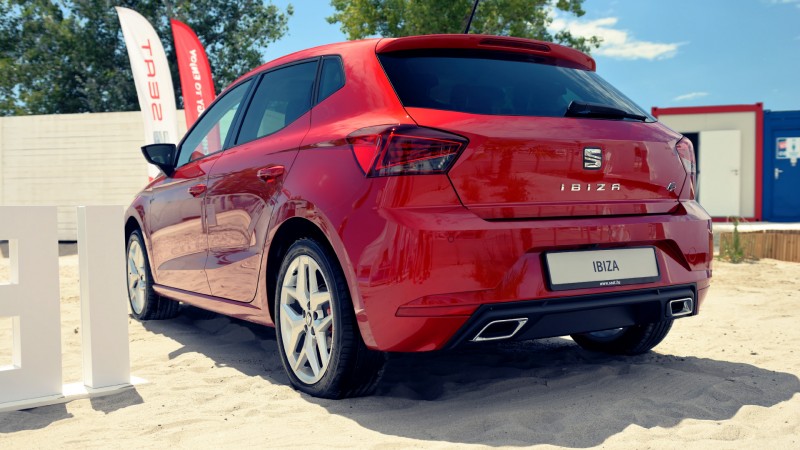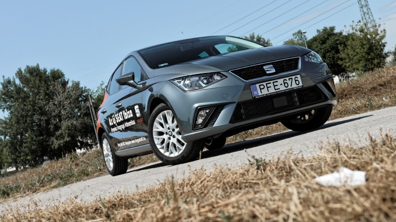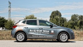LED-es fényszóró nélkül rögtön nem olyan látványosEgy órával később a tűző napon állok Budapest határában, kezemben másfél kilónyi fényképezőgéppel, előttem pedig az új Ibizával, amiről valószínűleg nagyon sokan nem mondanák meg, hogy egy vadonatúj fejlesztés. Szürkében, látványos LED-ek nélkül, józan felszereltséggel egy szimpla kisautót láthatunk, amelyet csak a határozott oldalsó élek, valamint a dinamikusra sikerült hátsó lámpák emelnek ki a tömegből. De ettől még nagyon is jó autó lehet!