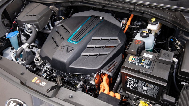 Hagyományos motornak látszik, de nem az: a borítás alatt az e-Niro izmos villanymotorja lapul, ami az autó első kerekeit hajtja