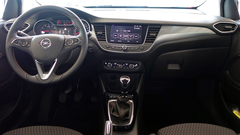 Az utastér és a klímapanel teljesen Opel - galériaHiába a PSA-féle padlólemez és technika, a külső formatervhez hasonlóan az utastérben is egyedi, az Opel aktuális formanyelvéhez igazodó megoldások várják az utasokat. Az anyaghasználat azért valamivel egyszerűbb, mint az Astrában vagy a Mokka X-ben: több a kemény műanyag elem, és a kialakítás is azt sugallja, hogy a Crossland X egy kategóriával lejjebb van pozícionálva. Ettől függetlenül a minőségre odafigyeltek a gyáriak, így bőségesen találunk például króm(ozott műanyag) díszítőelemeket, és az általános minőségérzettel sincs gond, a menetpróbán semmi nem zörgött az autókban. A középkonzol nagy részét elfoglaló méretes érintőképernyőn egy mindenféle mobiltelefonos kapcsolódási módra és Apple CarPlay ill. Android Auto funkcióra képes multimédiás rendszer fut, aminek több változata is elérhető (navival vagy anélkül), és ami széria (!) az autóhoz, akárcsak a klíma. Valójában egy magyar menüvel rendelkező, Opel-módra ‘átcicomázott’ PSA-féle rendszerről van szó, de a lényeg, hogy teljesen jól működik.