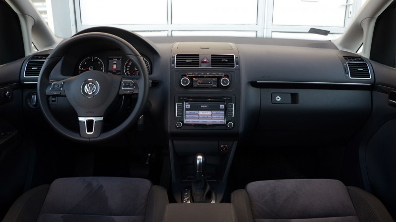 Innen nézve szinte bármelyik VW lehet.Ami autórajongói oldalról egyet jelent az unalmas szóval, az a célközönségnél egyértelmű, otthonos jelzőkként kristályosodik ki. Belül is a szokásos egyszerű kezelés fogad, az extralistán mindent megtalálunk, a mindkét parkolási formát (merőleges/párhuzamos) jól kivitelező automata parkolórendszert beleértve, az anyagminőség pedig a felül remek, alul kemény, kopogós anyagokkal a kategóriában megszokott szintet hozza, korrekt összeszereléssel párosítva.