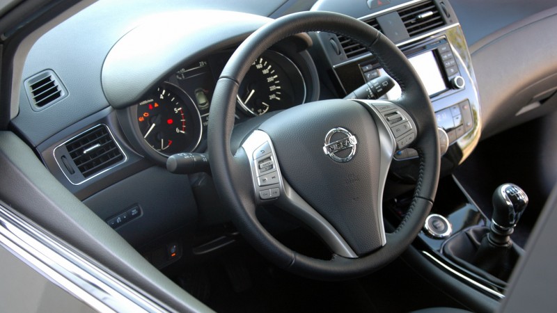 A tapasztalatok pedig igazolják a Nissan által felsorakoztatott számokat, ugyanis elöl-hátul tisztességes helykínálattal szolgál a Pulsar, amely a műszerfal kialakításával még tovább fokozza a teret. Ugyanis a japánok műszerfala nem tolakodik be olyannyira a vezető környezetébe, mint sok kategóriatársnál, nem folyik a sofőr és utasa köré, hanem messzebb húzódik és laposan. A széltében végighúzódó betét mintája is kellemes a szemnek, a műszerfal formái pedig a Qashqaiból ismerősek. Jellemző a jó ergonómia és a könnyű kezelhetőség, az összeszerelési minőség pedig általánosságban jó, míg az anyagok színvonala a kategória átlagát hozza.