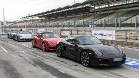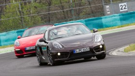 A sort a Boxster testvérével, vagyis a keménytetős Caymannal zártuk, amelynek második generációját eddig még nem állt módunkban kipróbálni. A rendezvényen a sok-sok Boxster S mellett mindössze egyetlen, ’sima’ Cayman árválkodott. Miközben a Cayman S-ben a Boxster S-ével szinte teljesen megegyező, de 10 lóerővel