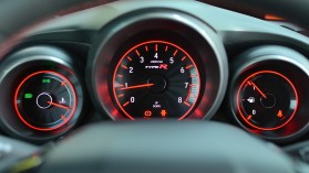 Fokozatban jó kedvvel szaladnak a mutatókHa már itt tartunk: a kétliteres turbómotor teljesen új fejlesztés. A közvetlen befecskendezéses egység különlegessége, hogy a kétoldali szelepvezérlés mellett a VTEC elektronikus vezérlést is megkapta. Ennek köszönhetően alul olyan jó erőben volt az erőforrás, hogy kettős megfúvású turbó helyett mono scroll turbófeltöltővel koronázhatták azt meg a mérnökök. A régi vágású megoldásnak előnye és hátránya is van: a valóságban alul nem olyan virgonc az erőforrás, mint a konkurens motorok (VTEC ide vagy oda), viszont szépen tud erősödni, majd kiteljesedni. Ez pedig visszahozza némileg a szívómotoros karaktert, még ha a gázreakció jócskán el is marad attól. A gyáriak 6500-nál ígérik a 310 lóerős teljesítményt, de valójában olyan jó kedvvel forog bele a négyhengeres a 7000-es limiterbe, hogy ha nem sürgetnének váltásra a műszerfal tetején szépen sorban felvillanó LED-ek, bizony leforgatnánk jó párszor az erőforrást.