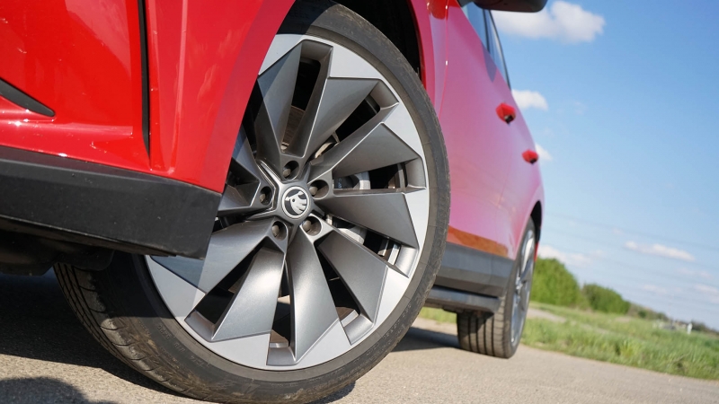 Mindenesetre a Škoda tervezői ügyesen oldották meg a feladatukat, hiszen az Enyaq iV kifejezetten mutatós lett, és amellett, hogy – legalábbis véleményünk szerint – megőrizte a márkára jellemző letisztultságot, azért izgalmakkal is bőven szolgál. Hamarosan ráadásul érkezik a kupésított változat is, amely már nem csak szemből, hanem a sportos tetőív tekintetében is az Enyaq előfutáraként bemutatott Vision iV koncepciót idézi majd. Az alap 18 colos kerekek mellett – amelyek egyébként csak acélfelniként, dísztárcsával léteznek, hiszen a könnyűfém keréktárcsák 19 coltól kezdődnek – , az Enyaq iV a márka történetében először rendelhető lesz akár 21 colos kerekekkel is. Utóbbiak voltak a tesztautón is, és bár hatalmas méretük érezhető volt, a kiváló futóművet még így sem hozták zavarba.