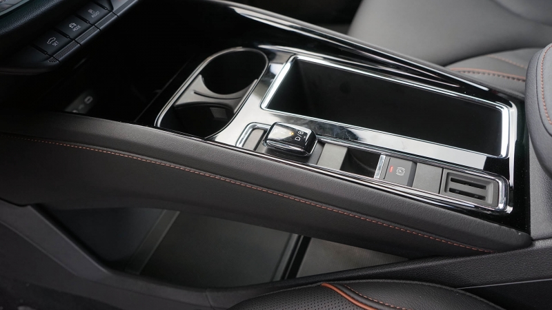 Az anyagminőség pedig valóban dicséretes: nem túlzás azt állítani, hogy az Enyaq legjobban felszerelt verziói a prémium ellenlábasok sarkára is képesek rátaposni több tekintetben. Puha, finom felületek, letisztult vonalvezetés, szép részletmegoldások, ráadásul az általunk kipróbált verzió a legkevésbé izgalmas, fekete utastérrel lett megrendelve. Az összeszerelés is példásnak tűnt, igaz ezek a cseh rendszámmal ellátott tesztautók még a gyártás egy igen korai szakaszából származtak.