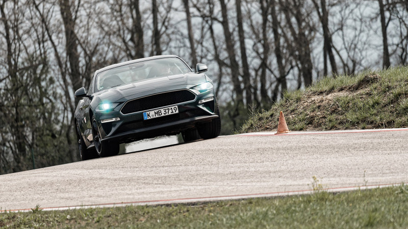 Ha nem is egy Hungaroring, a zsámbéki Driving Camp körpályája biztosít némi teret a mókázásnak: a technikás kanyarok és a szintkülönbségek még sportautókat is meg tudnak dolgoztatni anélkül, hogy indokolatlanul nagy terhelést mérjenek rájuk. Ezúttal pedig sportmodell volt a javából, amely V8-as dübörgésével megtöltötte az eső után felszáradó szántóföldek uralta tájat. A Bullitt tette tiszteletét nálunk, rögtön három-négy példányban, mi pedig tényleg nagyon alaposan meghajtottuk a 460 lóerős modellt.