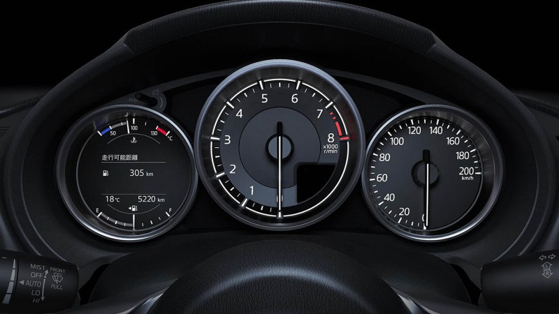 Néhány új technológiai megoldás is csatlakozik a kínálathoz, így ezentúl továbbfejlesztett, gyalogosfelismerővel is ellátott városi vészfékrendszer, tolatókamera, éberségfigyelő és táblafelismerő is elérhető lesz. Belül egyébként ugyancsak nem változik az autó, leszámítva persze a központi fordulatszámmérőt, aminek piros zónáját kitolták a gyáriak az új erőforrásnak megfelelően. Habár a most megjelent, európai premierről szóló anyagban nem említi a Mazda, de reméljük, hogy a tengelyirányban állítható kormányoszlop is eljut az öreg kontinensre, hiszen bár csak 3 centis szakaszon lehet variálni a volán beállítását, sokaknak ez is pont elég lenne ahhoz, hogy kényelmesen tudjanak helyet foglalni az autóban – és nem látjuk okát, hogy ezt a funkciót Európába ne hozzák el a japánok.