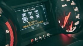 Az ESP-t is állítja a módválasztóMár csak egy jó szett gumira van szükség a jó boldogulás érdekében, a Raptor pedig ezt is megkapta a számára egyedileg fejlesztett 285/70 R17-es BF Goodrich abroncsok képében. Emellett a jármű alját 2,3 mm-es nagymerevségű acéllemezek borítják a tökéletes védelem érdekében, és természetesen a hátsó zárható differenciálmű is széria. Belül a Ranger az egyedi Raptor felkészítés mellett (például a kormánykerék középállást jelző vörös betétje) megkapta a Ford legújabb Sync 3-as rendszerét is.
