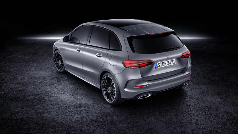 Természetesen az A-osztállyal megkezdett irányvonalon haladtak tovább a Mercedes-Benz tervezői, így rengeteg hasonló elemet vélhetünk felfedezni a B-osztályon, de mégis sikerült némi egyediséget is belevinni a formákba. Ilyenek például a hasonló, de mégis lágyabb vonásokat és eltérő nappali menetfényt kapó, akár adaptív MULTIBEAM LED technológiával is elérhető első fényszórók vagy az ugyancsak más grafikával megáldott hátsó lámpatestek. Az kétségtelen, hogy az új B-osztály jóval dinamikusabb képet fest, mint elődjei.