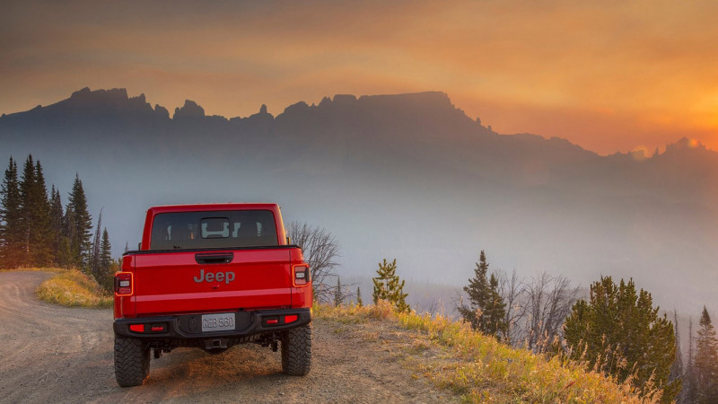 A Gladiator Overland és Rubicon modellekhez rendelhető lesz a LED-es fényszóró és ködlámpa is. Hátulra szintén kérhetők LED-es lámpák, amelyek közrefogják a könnyű rakodást lehetővé tévő széles platóajtót. Az ajtó csillapított mozgású, és három helyzetben reteszelhető. A plató hossza meghaladja a másfél métert, a Gladiator terhelhetősége pedig jóval hét mázsa fölött van. A teljes értékű pótkerék a plató alatt, a hátsó tengely mögött kapott helyet.