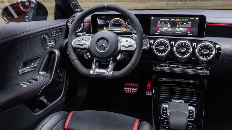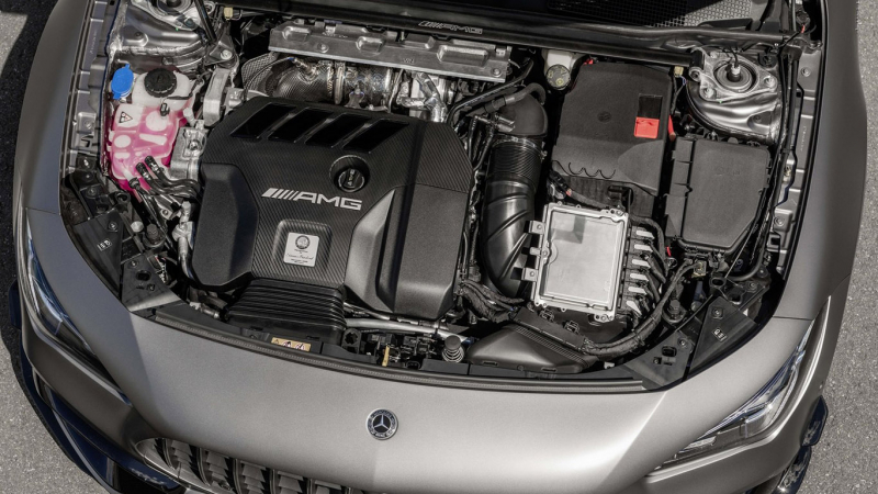 Ami különösen érdekes az új Mercedes-AMG kompakt csúcs-sportolók esetében, hogy a mai divattal ellentétben a mérnökök (egyelőre) elhagyták az elektromos segédletet, vagyis szó sincs bárminemű hibrid rásegítésről. A drasztikusan szigorodó károsanyag-kibocsátási törvények miatt ez minden bizonnyal csak átmeneti állapot, de addig örüljünk, ameddig nem kell jelentős plusz súlyt cipelniük ezeknek a családi sportautóknak.