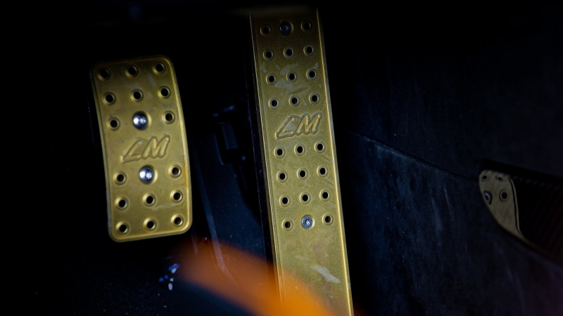 Szintén az F1-es LM-ek által inspirálódtak a tervezők, amikor az aerodinamikailag továbbfejlesztett karosszériát, vagy a teljesen egyedi belsőt tették le az asztalra. Nem maradtak adósak az LM-emblémákkal sem: akár a fejtámlákra, akár a fém pedálokra pillantunk, az ikonikus két betű köszön ránk vissza.