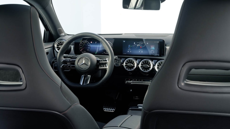 Az utastérben ezentúl alapáron jár majd a 10,25 colos multimédiás érintőképernyő és a tolatókamera, ami mellett alapból egy 7 colos, de felárért egy ugyancsak 10,25 colos digitális műszeregység található. A formák lényegében nem változtak, de eltűnt az új funkciókkal (köztük ujjlenyomat-felismerés és friss hangvezérlés) bővülő MBUX rendszer fizikai kezelőszerve az alsó középső konzolról.