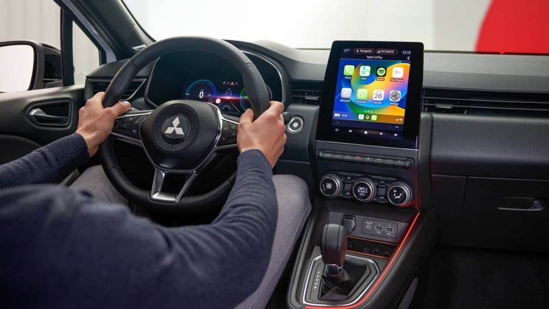 A frissült kisautón alapuló Colt LED-es fényei abszolút modern és kicsit szigorú hatást keltenek, miközben a csomagtérajtón méretes Mitsubishi felirat árulkodik arról, hogy a messziről Cliónak nézett autó igazából egy japán modell. Az utastérben is jóformán az embléma tér el, a formák, megoldások és a 7 vagy épp 9,3 colos érintős rendszer, na meg az Apple Carplay / Android Auto tükrözés ugyanaz, mint a francia modellben. A kormány mögött ugyancsak ismerős lehet a 10 hüvelyk képátlójú vetített óracsoport.