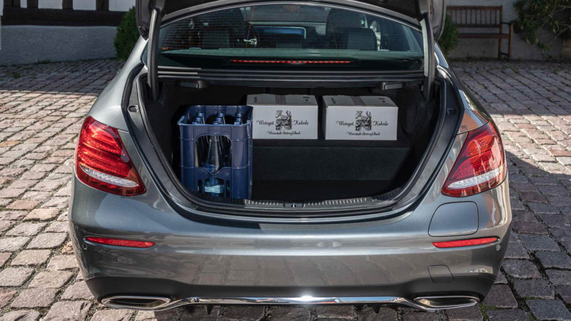 A 122 lovas elektromotor egyébként mindkét esetben önmagában 400 Nm-t tud felmutatni, és a kilencfokozatú automata váltó házába van beépítve. A fogyasztás a benzines esetén 2 l/100 km, a dízelnél pedig 1,6 l/100 km, legalábbis az első 100 kilométeres távon, teletöltött akkumulátorral. A töltés egyébként a Mercedes gyári, 7,4 kW-os töltőjével mindössze 1,5 órát vesz igénybe – pontosabban 10-ről 100 %-ra, de a visszatöltésnek köszönhetően közel 10 % szinte mindig van az akkuban. A normál, 230 Voltos csatlakozóval egyébként 5 óra a teljes töltés. A hibrid verziók csomagtere sajnos jóval kisebb lesz a nagy akkumulátor okán, ahogyan az a képeken is látszik.