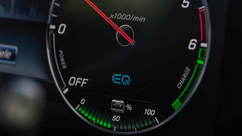 Akárcsak a C-osztály esetében, az E-osztálynál is csupán a hátsó lökhárító jobb sarkában feltűnő töltőnyílás és a típusjelzés utal a villanymotor jelenlétére kívül, míg belül a digitális műszeregység és a multimédiás rendszer dedikált mutatói és menüpontjai lehetnek árulkodók – illetve az üzemmódkapcsoló is gyanús lehet.