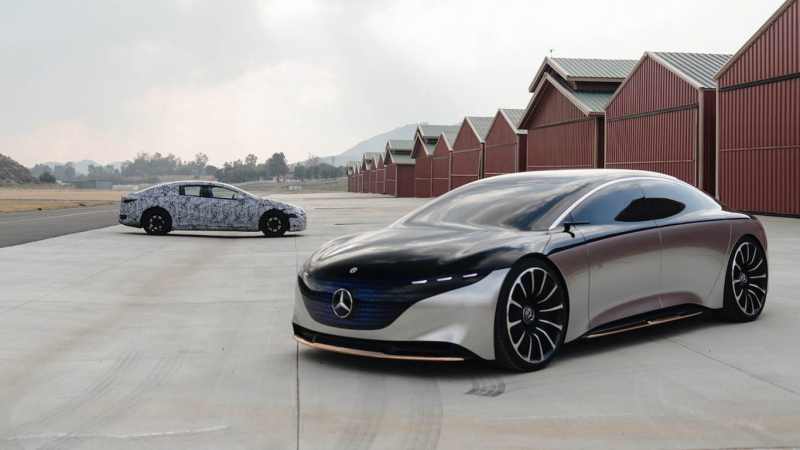 A Mercedes-Benz tisztán elektromos EQ palettája az EQC és az EQV képében eddig két tagot tud felvonultatni, de hamarosan tovább bővül majd a kínálat, méghozzá egy luxusszedánnal, ami az S-osztály elektromos megfelelője lehet majd, és ennek megfelelően az EQS nevet kapja. Ez a betűhármas már ismerős lehet: a csillagosok alig pár hónapja, a tavalyi Frankfurti Autószalonon mutatták be az EQS koncepciót, most pedig néhány fotón azt is megmutatták, amikor a szériaváltozat egyik első prototípusa először találkozott az azonos nevet viselő tanulmánnyal.