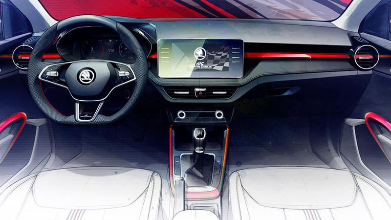 A belső térben a sportosabb, vörös varrású perforált bőr kormánykerék mellett vörös betétek és vörös-fekete sportülések hirdetik a sportos hangulatot. Az enteriőrben a Monte Carlo felirat a központi rendszer kijelzőjén bukkan fel. Az árakat még nem ismerjük, de a Style szintű Fabiáknál ekvivalens hajtáslánccal körülbelül 7-800 ezer forinttal kerülhetnek majd többe a Monte Carlók, ami azt jelenti, hogy a 110 lóerős 1.0 TSI kézi váltóval listaáron 7,6 millió forint körül startolhat, míg az 1.5 TSI DSG Monte Carlo közel 9 millió forintba kerülhet majd az árlista szerint.