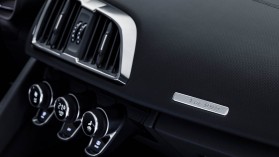 Az utastérben Alcantara sportülésekkel találkozhatunk, de egyébként visszafogottság uralkodik belül – már amennyire ez lehetséges egy R8-ban. Nincsenek színes betétek, rikító kontrasztvarrások és ehhez hasonló extrák, csupán a letisztult és egyszerű sportosság, persze a limitált szériára azért utal egy plakett az utas előtt.