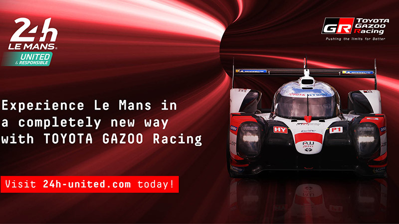 A legendás Le Mans-i 24 órás versenyen sorozatban harmadik győzelmére hajtó TOYOTA GAZOO Racing arra buzdítja az autósport-rajongókat, akik otthonról figyelik a 88. alkalommal megrendezésre kerülő 24 órás Le Mans futam eseményeit, hogy új és izgalmas módon, a nemrég elindított “24H United & Responsible” digitális platform révén éljék át ezt az élményt.