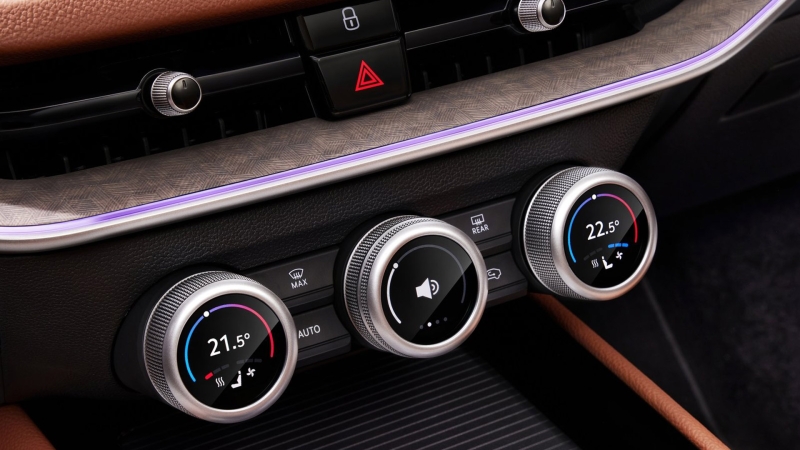A Škoda mérnökei nem bíztak mindent az érintőkijelzőre, hanem a balanszot keresték az érintős vezérlők és a fizikai gombok között. Így lettek végül a változó tartalmú vezérlőtárcsák, amelyek minden bizonnyal jó szolgálatot tesznek majd. Az okos tárcsák közepén ráadásul 1,25 colos kis kijelzők is szerepelnek, amelyek a funkcionalitást hivatottak bővíteni. Így a klasszikus klíma funkciók mellett a vezetői üzemmódok vagy épp a térkép nagyítása is kezelhető velük. A különféle funkciók között hosszabb lenyomással válthat a sofőr.