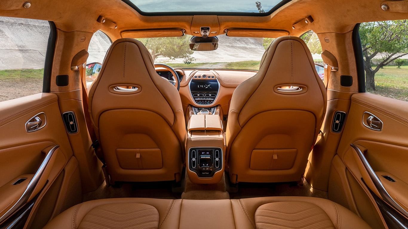 Az Aston Martin nagyon komoly ügyfélkutatást végzett a DBX belső terének kialakításakor, a végeredmény pedig elmondásuk szerint nem csak különösen igényes, kézműves műremek, hanem egy praktikusan kihasználható, többcélú belső lett. A gyerekekkel is számoltak a tervezők, sőt, a jó körpanorámát és a belső átláthatóságot is szem előtt tartották a mérnökök, miközben a sportautó-gyártás legszebb alapvetését alkalmazva a vezető köré építették fel a pilótafülkét. Nem csak tökéletes üléspozíciót ígér a gyártó, hanem széles körűen személyre szabhatót is, amely a hölgyvásárlók tetszését is elnyeri.