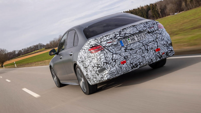 A prototípus motorja még hagyományosabb felfogást képvisel: a C300 4MATIC mechanikus összkerékhajtással, kilenc fokozatú bolygóműves automatával és 258 lóerős kétliteres turbómotorral rendelkezik, amelynek teljesítményét a 48 V-os hibrid rendszer időnként már 28 lóerővel is meg tudja tolni.