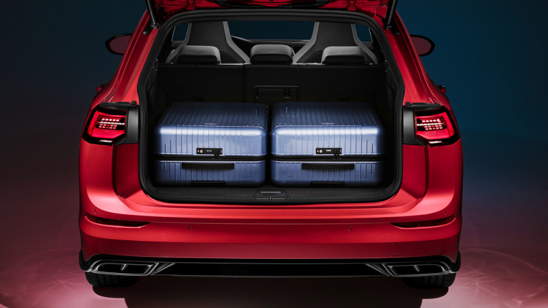Nem maradhat el a kombiknál egyre általánosabb elektromos csomagtérajtó, és szintén általános Golf Variant-jellemző a poggyásztér táskaakasztója, illetve a csomagrögzítő gyűrűk megléte. Áramforrásból kettő is jutott hátulra: egy-egy 12V-os és 230V-os dugalj várja a kütyüket.