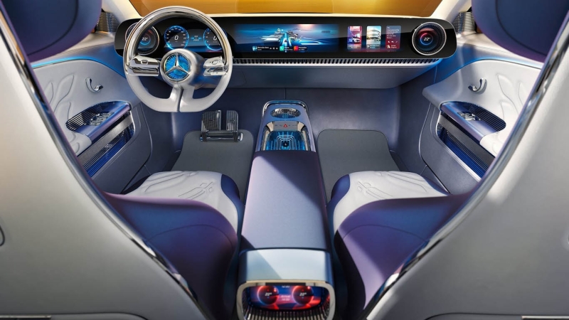 Ahogy a külső, úgy az utastér esetében is a minimalista tervezés érvényesült: a technológiára fókuszáló kabin mintegy öt kijelzőt rejt, amelyekről ugyan pontos részleteket nem árultak el a stuttgartiak, ám azt tudni lehet, hogy már a teljes egészében új Mercedes operációs rendszer fut rajtuk. Hogy milyen combos a hardver, azt a vízhűtésű NVIDIA chip jól érzékelteti.