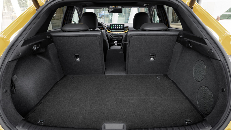A túlnyúlások miatt pedig tágasabb: a csomagtartó 31 literrel nőtt, azaz 426 literes. A tér megfelelően tágas és nem is lapos, így kisebb bőröndök állítva is beférnek, ráadásul 6 centivel alacsonyabb a padló is, vagyis kisebbet kell emelni, mint a sima Ceed esetében. A hátsó üléstámlák ledöntésével a raktér 1378 literesre bővíthető. A variálhatóságot és a használhatóságot fokozza a 40:20:40 arányban osztott hátsó üléstámla, a csomagtérajtó opcionális elektromos mozgatása, valamint az osztott rakodótér. A kétféleképpen betehető padlóval növelhető a raktér vagy külön alsó rekesz is kialakítható.