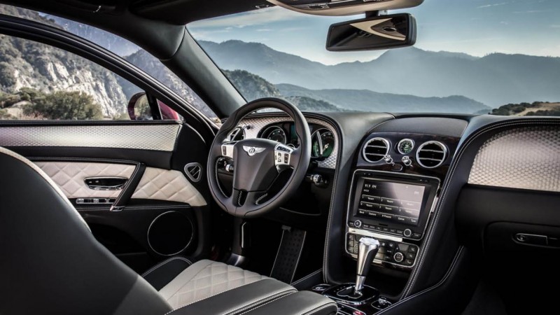 Az utastérben nagyjából ugyanaz a helyzet, mint a külsőnél: a szemfülesek a lakkozott, fekete fabetétekből, a háromküllős sportkormányból és a recézett váltógombból illetve váltófülekből ismerhetik fel a V8 S változatot – de a kéttónusú kárpitok és a tetőn lévő konzol elütő színe is árulkodó lehet. Ahogyan már említettem, a Flying Spur V8 S a március 1-jén kezdődő Genfi Autószalon mutatkozik majd be élőben.