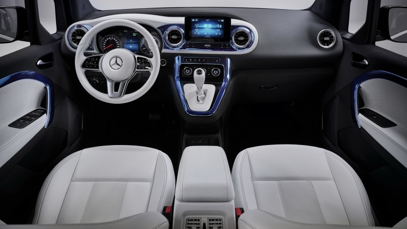 A haszonjármű jellegre rácáfolandó tetőablak és MBUX jelzi a prémium vonalat, a kékes kiegészítők pedig a ’tiszta’ meghajtást. A szériagyártmányba persze hagyományos motorok – a Renault-féle 1,33 literes benzines, vagy éppen az 1,5-ös dízel – is kerülhetnek majd, a nem részletezett tudású villanyhajtás csak egy választási lehetőség lesz.