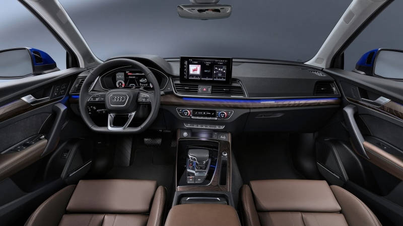 A frissített Q5-ből érkezik a Sportback változatok lelke: a kezelőszervek, a kijelzők és az őket kiszolgáló szoftver is a már ismert MIB 3 rendszer részegységei. A klasszikus műszerfal helyére egy 12,3 hüvelykes virtuális egység kerül, ezen felül a 10,1 hüvelykes központi érintőképernyőről vezérelhető a jármű. A térhatású hangzásra képes Bang and Olufsen rendszert külön lehet megrendelni.
