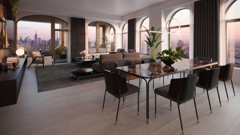 Pár szó essen szó a lakásokról is, hiszen a luxusmárka nem mással, mint Sir David Adjaye építésszel ’bútorozott össze’. Mindegyik lakás a William 130. alatti épületben (annak 59. vagy 60 emeletén) található. A nagy nappali-étkező egységből egy nyitott loggiára léphetnek a szerencsés látogatók. A konyhabútort megfeketedett tölgyből készítették és Gaggenau gépészetet helyeztek el a lapok alatt. A márvány nem csupán az autóban, hanem a konyhában, továbbá a lakás több pontján is megjelenik. Az elsődleges hálószobában Formitalia bútorok és kasmír fejlap jelzik az alkotók igényességét, a legújabb ruhakollekciókat pedig tágas gardrób várja.