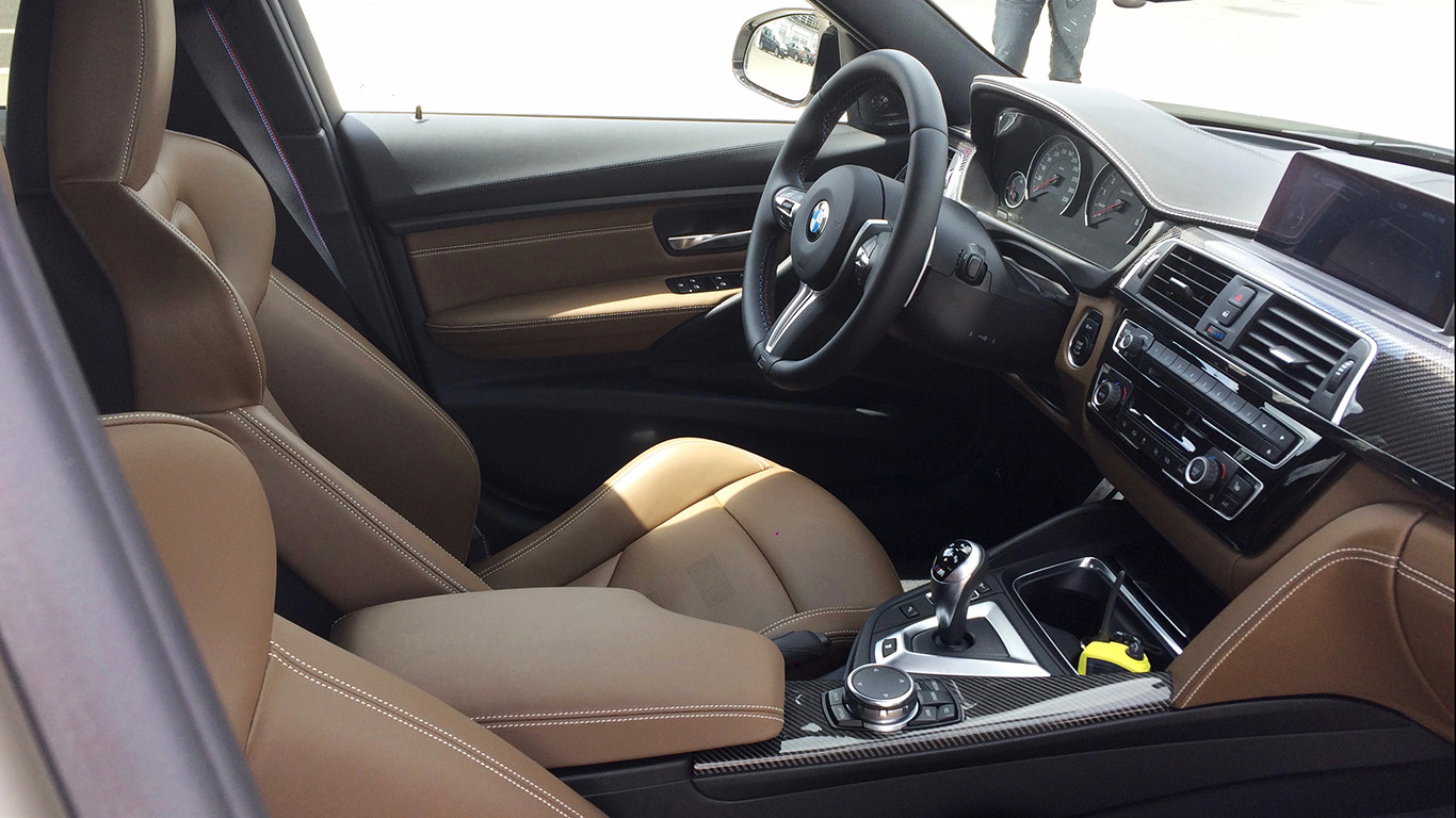 Minden van, mi szem-szájnak ingereÉs ez a példány az álomtípuson belül is maga volt az álom: Competition csomag, karbon-kerámia fékek, egy letaglózó szín (a képek nem adják vissza sajnos, hogy élőben mennyire ütött), valamint egy szívdöglesztő kétszínű barna/fekete belső konfiguráció a legfinomabb Merino bőrkárpittal, bőrbe varrott műszerfallal és kontrasztvarrásokkal, valódi szénszálas díszbetétekkel, na meg persze minden elképzelhető extrával, az M DCT váltót is beleértve. Na igen, ez a példány kiválóan prezentálta, hogy zseniális M2 ide vagy oda, ha el vagyunk eresztve anyagilag, miért érdemes körülnézni egy kategóriával feljebb, mert az M2 kissé komor és egyszerű fekete belseje után itt a Mennyországban érezhetjük magunkat. Persze azért tudni érdemes, hogy ennek az M3-nak az árából két alapfelszereltségű M2-t is vehetünk...