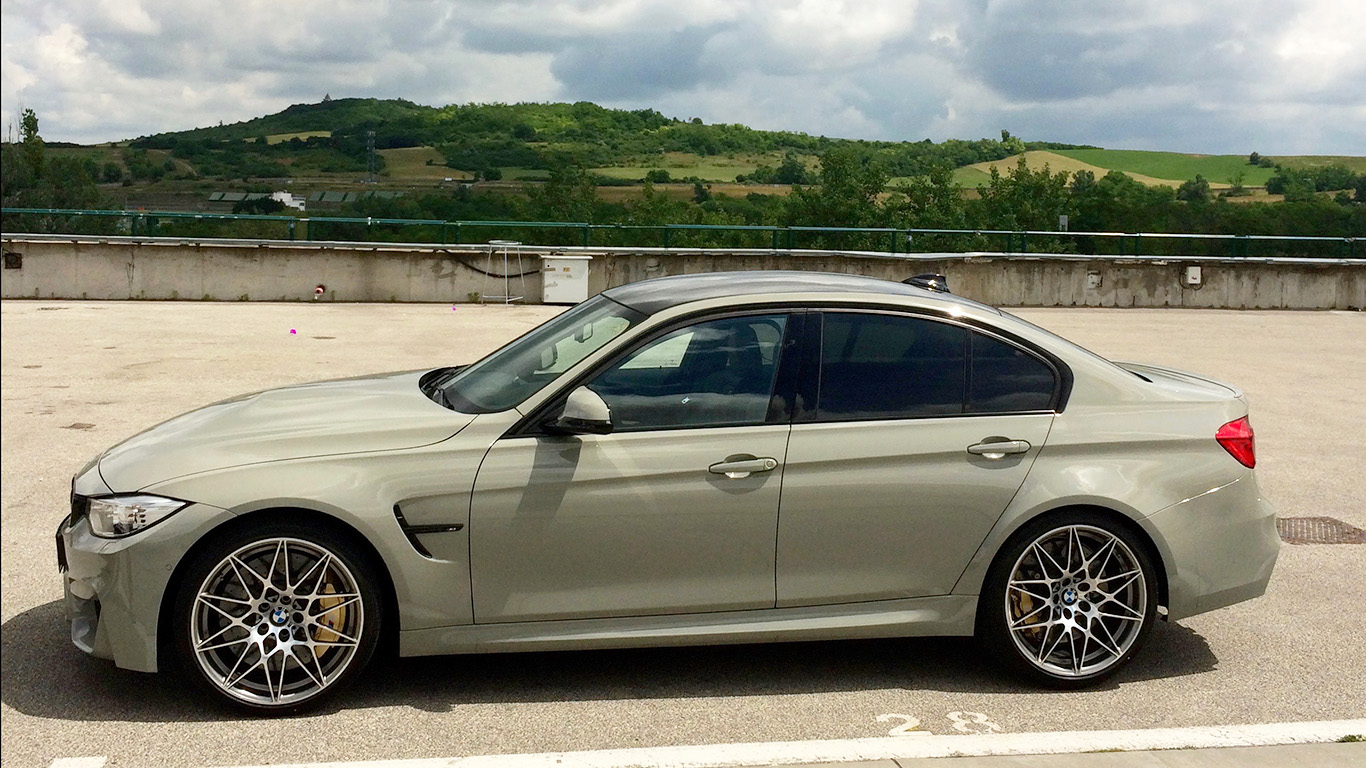 A hungaroringi BMW M2 programhoz egy pályán kívüli tesztvezetés is tartozott: közúton közel egy órán át vallathattunk izgalmas BMW M-modelleket. A sort olyan finomságok alkották az M2-n kívül, mint az M3, az M4 és az M6, utóbbiak kivétel nélkül Competition versenycsomaggal. Mivel M3/M4 Competition-t (a részleteket ide kattintva olvashatják) eddig nem volt alkalmunk vezetni, gyakorlatilag sprintelve startoltam a csodálatos Individual fényezésű M3 felé, ami egészen tágas négyajtós karosszériájával és tisztességes csomagtartójával nem titkoltan álmaim családi autója.