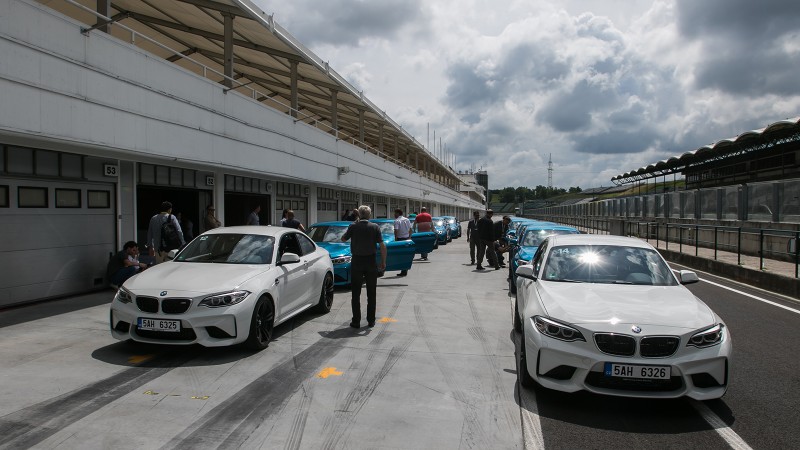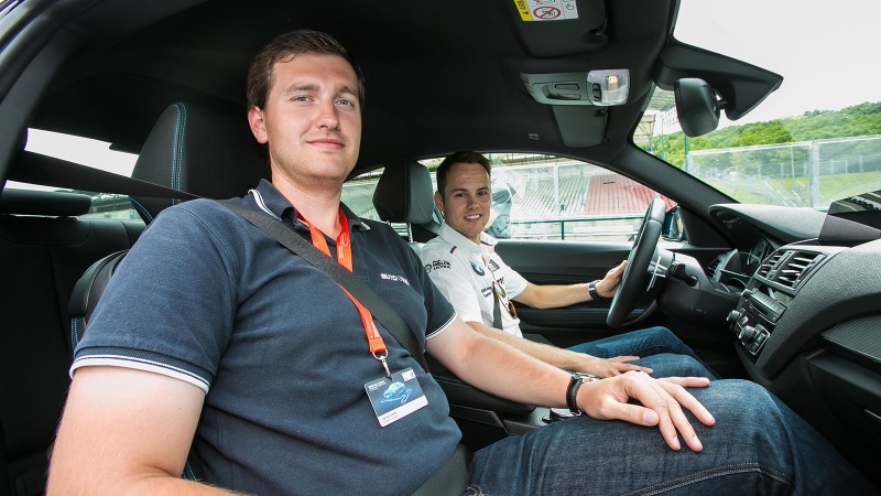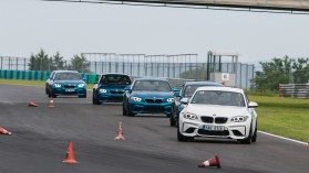 Csodák azért nincsenek, a nap végére kissé megfáradt az M2-flotta, de mindenképp az autó becsületére váljon, hogy hiába puhultak fel a fékpedálok, a fékhatással még délutánra sem volt probléma, ami kiválóan jelzi a technika igényességét. Ez már önmagában óriási dolog, különösen annak tudatában, hogy a hasonló rendezvényeken a szervezők rendszerint kihagyják a célegyenest a programból és a boxutcán átgurulva ravasz sorrendcseréket kérnek (ez felüdülés a technikának), hiszen az első kanyar előtti féktávon kapják a fékek a legnagyobb pofont. Azonban a BMW délután a délelőtti részkörös ügyességi versenyeket követően a teljes pályát célba vette, keményen nyúztuk az autókat, mi több, a végén egy kis autóztatásra is maradt tartalék: egy (de valójában másfél) gyorskör erejéig Tom Blomquist gyári BMW DTM pilóta mutatta meg, hogy hogyan kellett volna autóznom. Gondolom, kitalálják: egész ügyesen használta a fiatal pilóta az autót.