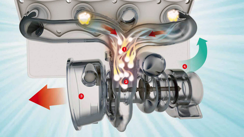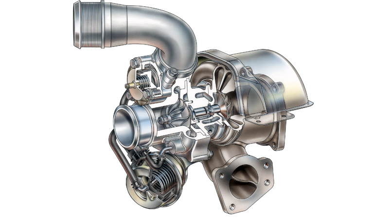 A nagyobb feltöltő a konvencionális elvek alapján a kipufogógáz által meghajtva működik, míg egy jóval kisebb egység az elektromos hajtást felhasználva építi fel a nyomást olyan esetekben, amikor a nagyobbik "csiga" még nem képes erre. Az elektromotor szinte késlekedés nélkül, azonnal felgyorsítja a kompresszorkereket, ami nyomban nyomásemelkedéssel szolgál. Ennyit tud ma a turbótechnológia, azonban természetesen a haladás nem áll, s vélhetően izgalmas és finom technikai csemegékre számíthatunk az elkövetkező években is.