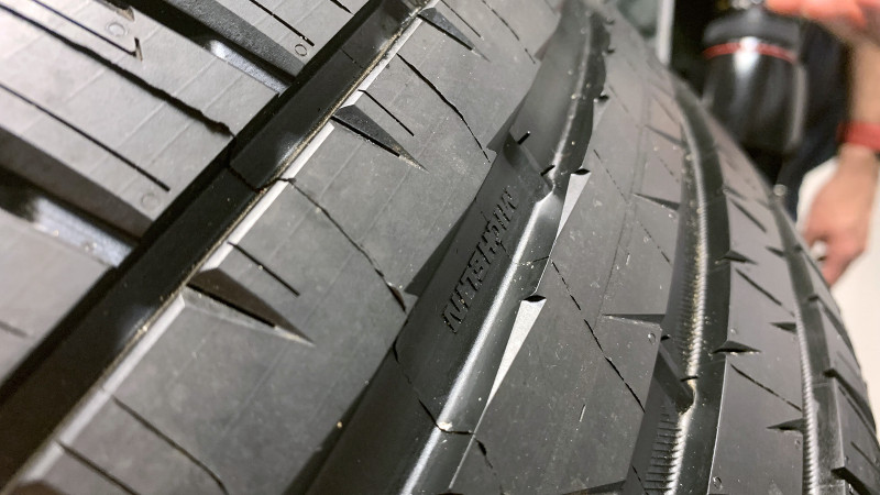 És bár ez szerintünk is nagyon kevésnek tűnik, a gyártó azt ígéri, hogy a speciális struktúra és a lefelé szélesedő, nem mellesleg a teljes mélységben bevágott csatornák, illetve lamellák révén ilyen kopott állapotukban is abszolút biztonságosak maradnak a gumik.