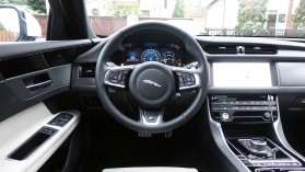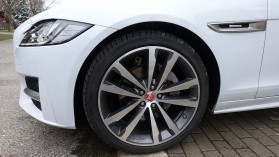 Még 20 colos kerekekkel is szépen rugózikMi ezért nem biztos, hogy kifizetnénk a kétturbós dízel közel 1,5 milliós felárát az egyturbóshoz képest, bár tény, hogy a 240 lóerős verzió sokkal jobban tol a 180 lovasnál. Az új fejlesztésű 250 lóerős (365 Nm), szintén 2-literes Ingenium benzines megfontolandó alternatíva akciósan 12,4 milliótól, hiszen hasonlóan dinamikus, alacsonyabb az ára és sokkal kulturáltabb, ám az ügyfelek által preferrált összkerékhajtás sajnos csak a 180 és a 240 lovas 4-hengeres dízelekhez kérhető, ráadásul a gázolajos modell(ek) kedvező fogyasztása kecsegtető: 6,5-7 literből még úgy is el lehet járni az összkerekes, 240 lóerős XF-fel, ha kiélvezzük az autó magas szintű menetdinamikáját, amit az óriási kerekekkel is fantasztikusan ügyesen dolgozó (egyszerre szépen csillapító, kényelmes és nagyon dinamikus) futómű, a kategória legjobb kormányzása, a harapós fékrendszer és a remek, éber 8-sebességes automata váltó is támogat. A kategóriatársakat nézve tényleg páratlanul jót lehet autózni az XF-fel, ráadásul a dinamika a komfort terén sem kíván csorbát, és autópályán is nagyon csendes az autó.