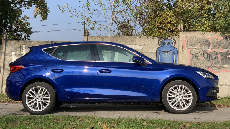 A kvartett ‘magja’, vagyis az immár 1974 óta velünk lévő Golf nyolcadik, míg az Audi A3, a Skoda Octavia és a Seat Leon negyedik generációjába lépett. Az újdonságok közül szerkesztőségünkhöz első ízben a spanyol delikvens érkezett tesztelésre, a Golf VIII pedig csak kicsit később látogatott el hozzánk, azonban Biczó Laci kolléga ‘hátrányból’ is megelőzött engem a cikk megírását tekintve, így először a 8-as Golfról olvashattak tesztet az Autó Pult hasábjain. Így aztán eget rengetően sok újdonsággal nem fogok tudni szolgálni, hiszen a tesztautók akár ikertestvérek is lehetnének: mindkét típus ötajtós karosszériával és a 130 lóerős 1.5 TSI EVO benzinmotorral járt nálunk, amihez egy hatfokozatú manuális váltó csatlakozott. A különbség csupán annyi, hogy miközben a Golfot szürke színben, 16 colos felnikkel és szerényebb felszereltséggel adta át tesztelésre az importőr, a Leon magas XCellence felszereltséggel, elegáns 17 colos kerékszettel és dögös sötétkék színben villantott.